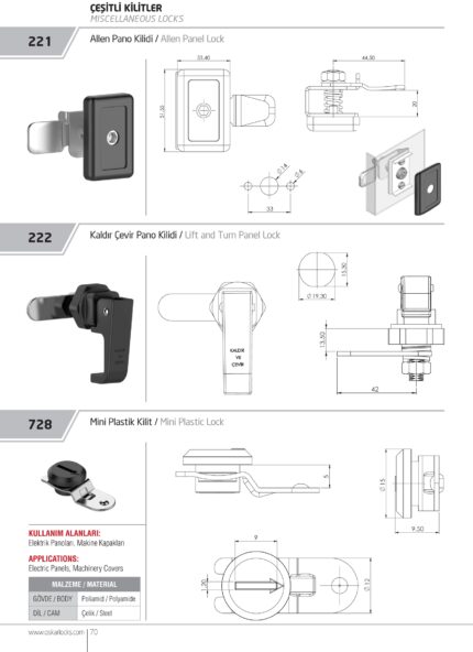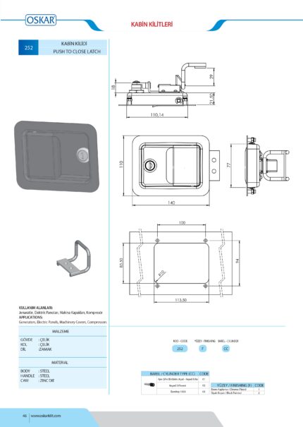 Dodatne informacije Područja upotrebe Električne stanice, Generatori, Metalni ormari za kamione TIJELO NEHRĐAJUĆI ČELIK ILI ČELIK RUČKA CINK LOKOT ČELIK