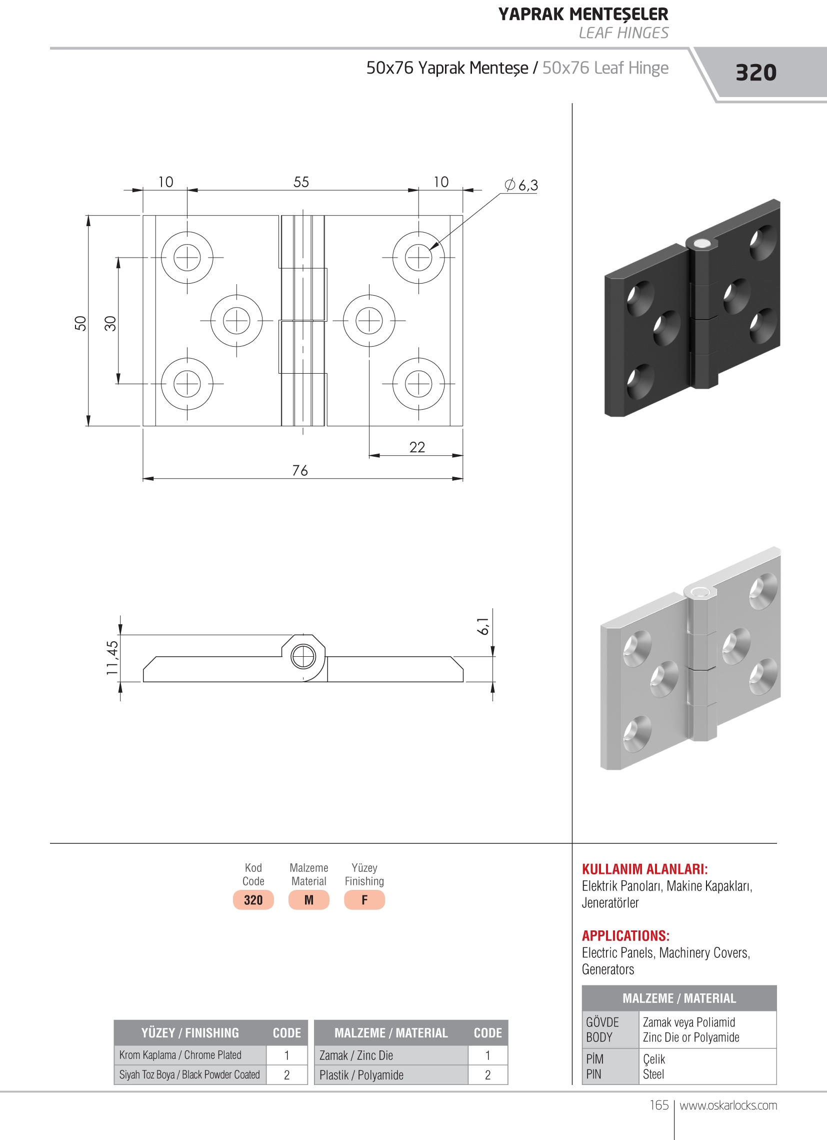 Područja upotrebe Električni ormari, Generatori, Vrata Strojevi TIJELO ČELIK ZAVRŠNA OBRADA Bakreno presvučeno – Pocinčano UGAO ROTACIJE 110° DIO ZA
