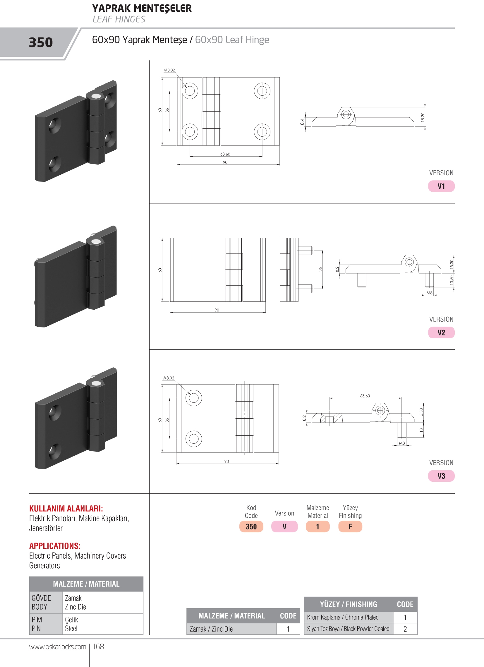 Područja upotrebe Električni ormari, Generatori, Vrata Strojevi TIJELO ČELIK ZAVRŠNA OBRADA Bakreno presvučeno – Pocinčano UGAO ROTACIJE 110° DIO ZA