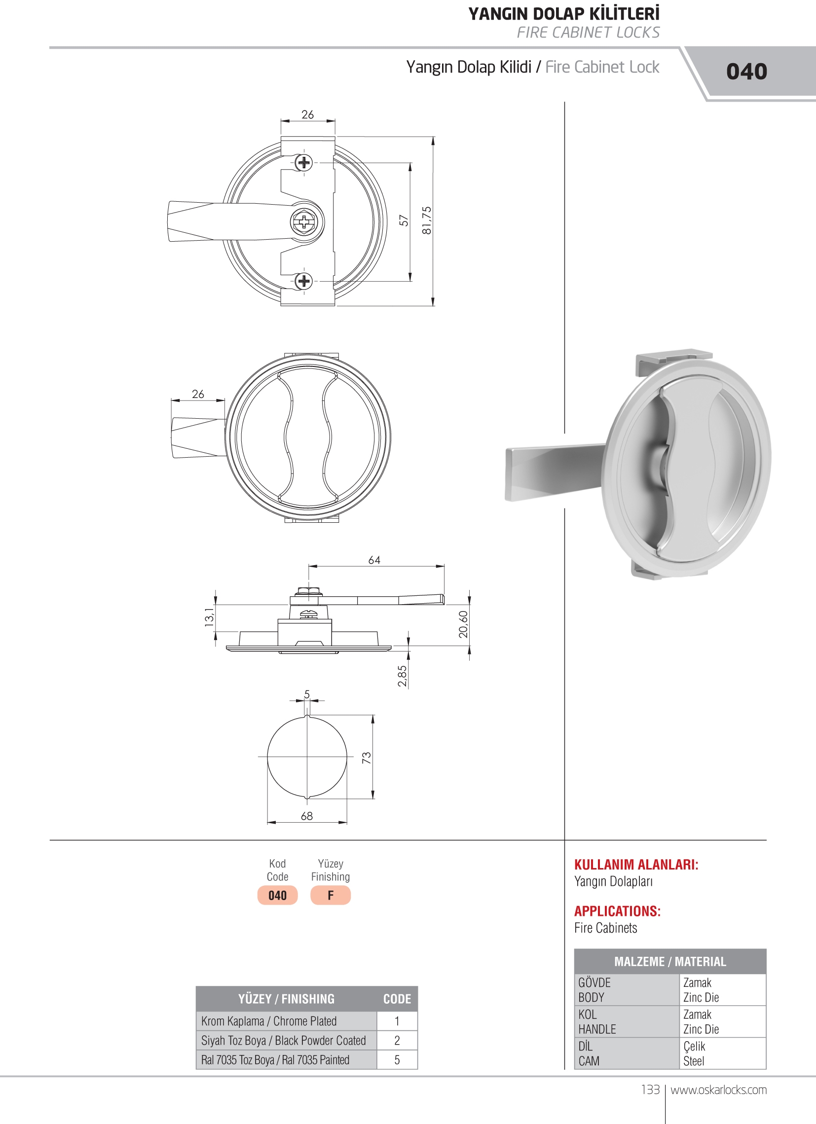 | Područja upotrebe | Protivpožarni ormari, Vrata strojeva |