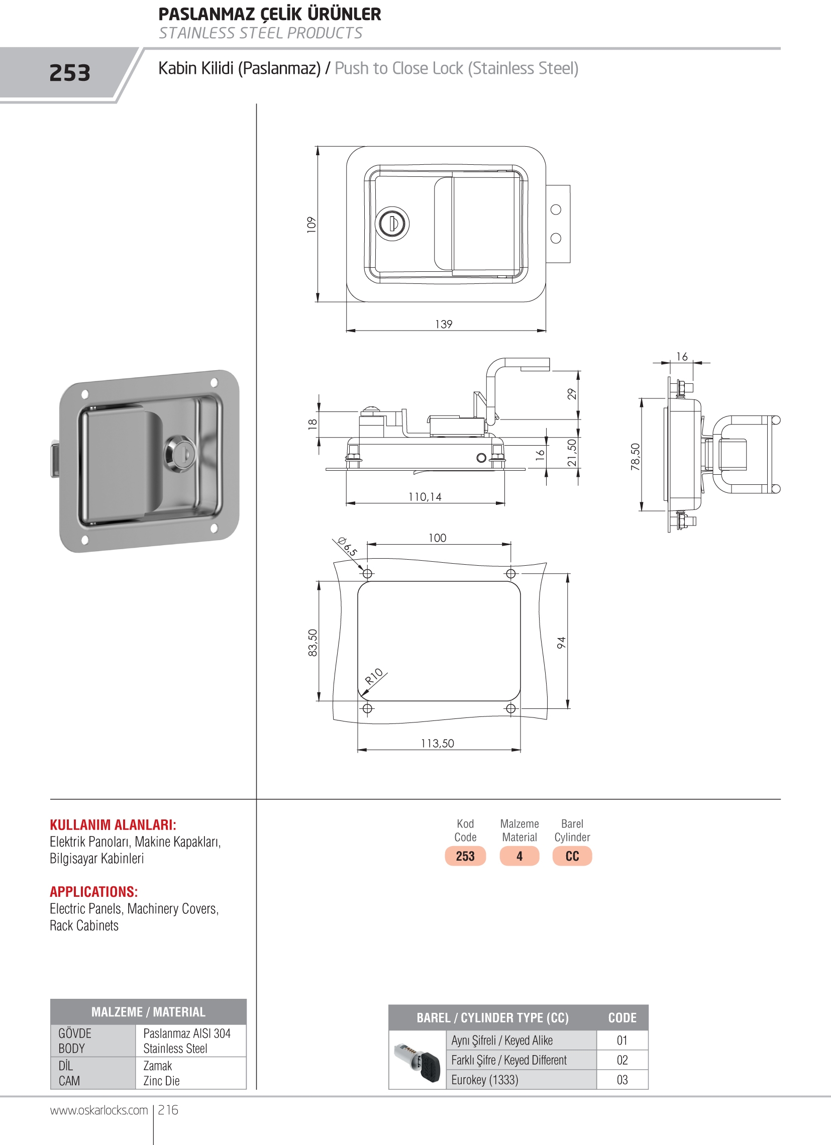 područje upotrebe ELEKTRIČNI ORMARI, ORMARIĆI, VRATA VRATA MAŠINA TIJELO NEHRĐAJUĆI ČELIK MATICA NEHRĐAJUĆI ČELIK JEZIČAK NEHRĐAJUĆI ČELIK BRTVA GUMA ULOŽAK
