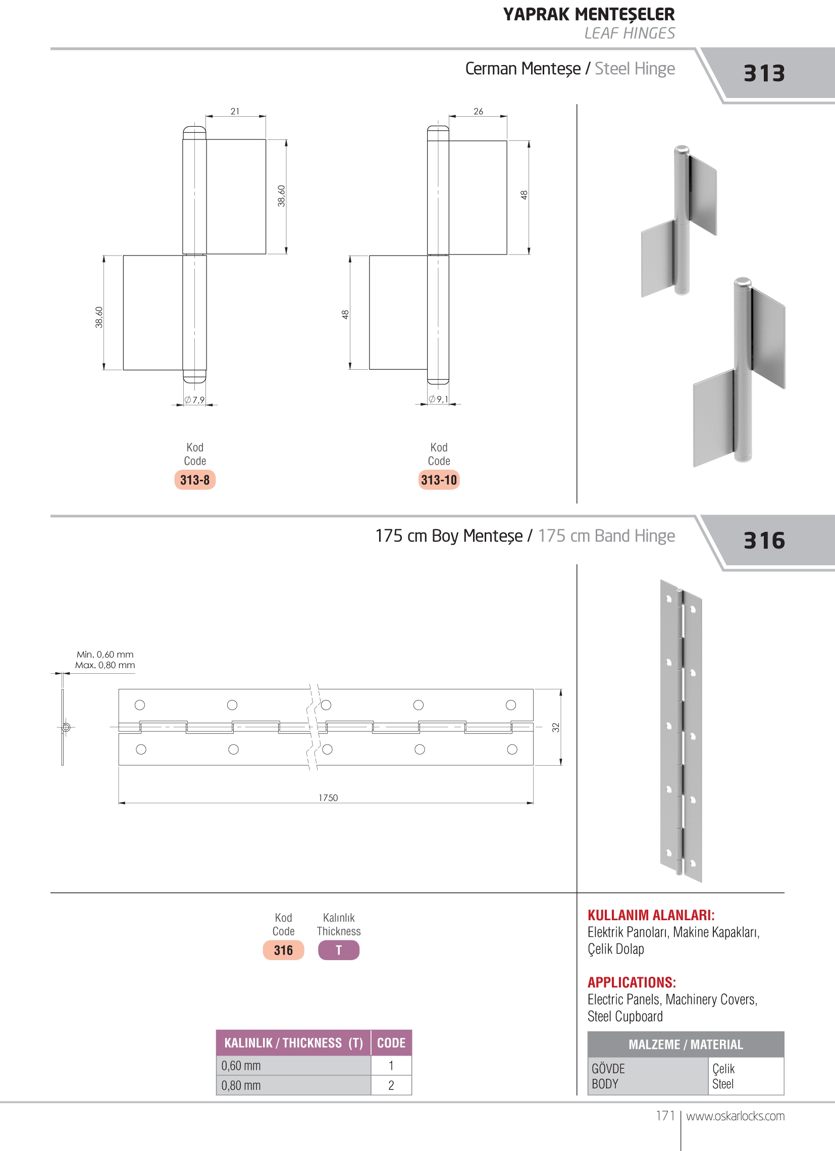 Područja upotrebe Električni ormari, Generatori, Vrata Strojevi TIJELO ČELIK ZAVRŠNA OBRADA Bakreno presvučeno – Pocinčano UGAO ROTACIJE 110° DIO ZA