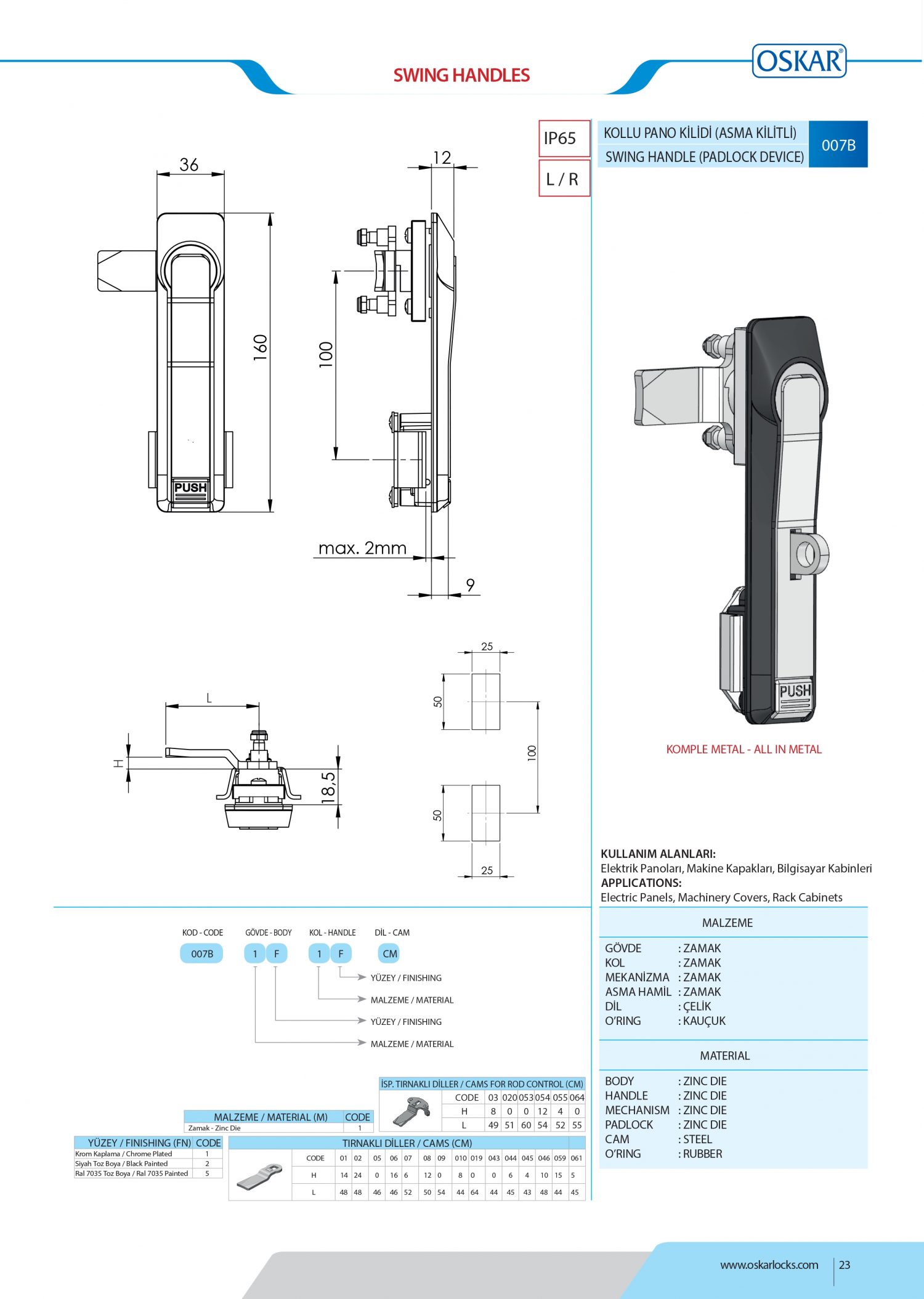 Područja upotrebe Električne ploče, ormarići, strojevi za vrata TIJELO POLIAMID DRŠKA POLIAMID CILINDAR POCINČANE MEHANIZAM CINK ILI POLIAMID LOKOT CINK