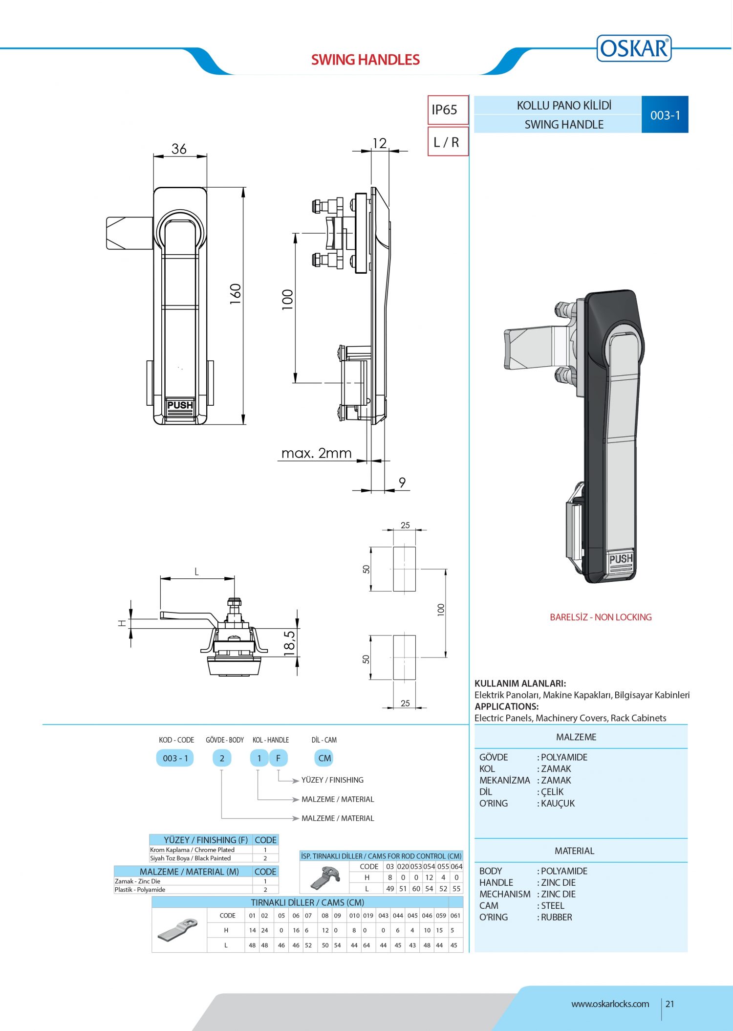 | Područja upotrebe | Električne ploče, Ormari za rack, Vrata, Strojevi |
