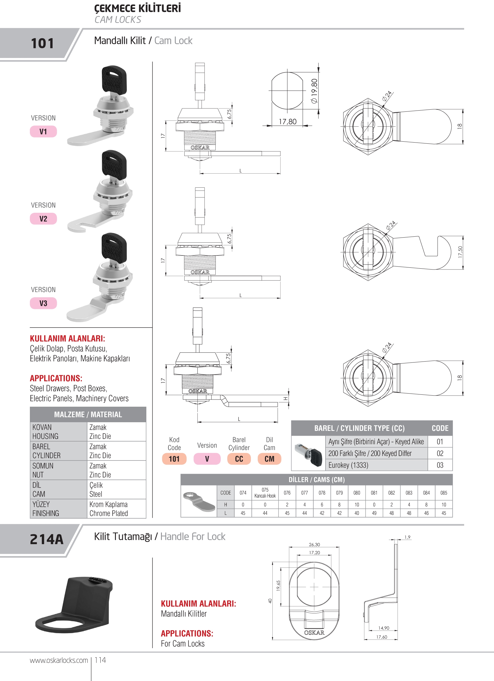 Dodatne informacije Područja upotrebe Električne ploče, ormarići, strojevi za vrata BODOVA POLIAMID DRŠKA POLIAMID ILI CINK CILINDAR POCINČANE MEHANIZAM CINK