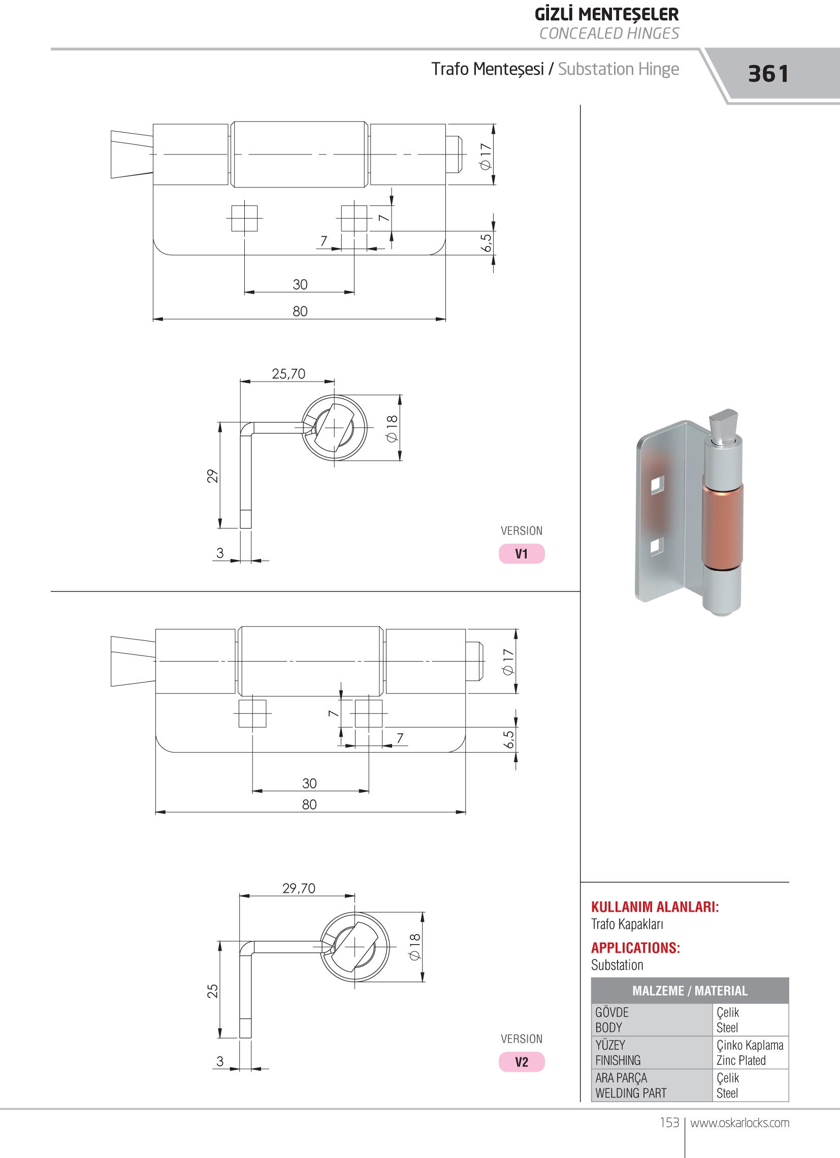 Područja upotrebe Električni ormari, Generatori, Mašinski ormari ZAVRŠNA OBRADA Bakreno presvučeno – Pocinčano DIO ZA ZAVARIVANJE Čelik UGAO ROTACIJE 110°