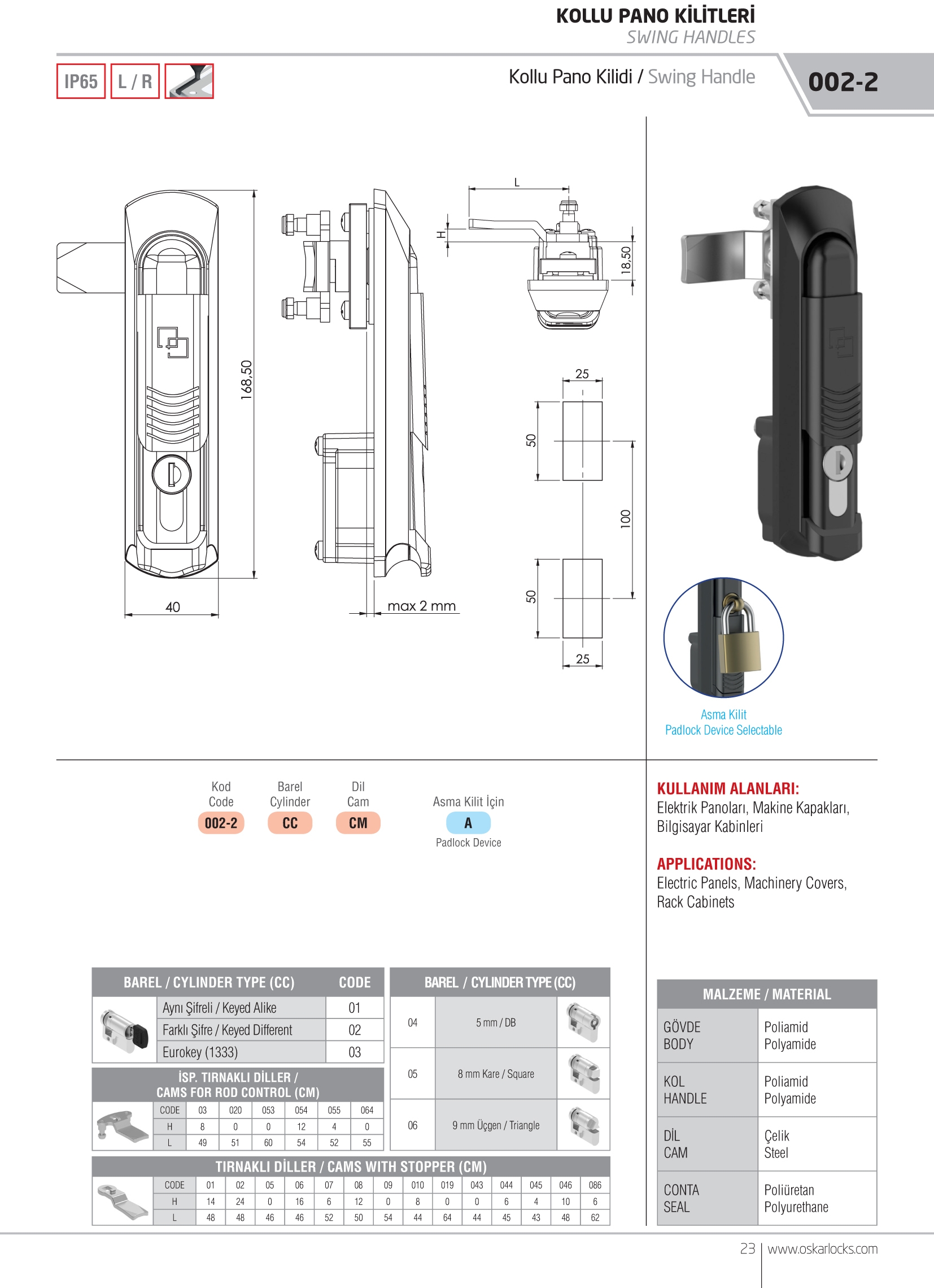 | Područja upotrebe | Električne ploče, Ormari za rack, Vrata, Strojevi |