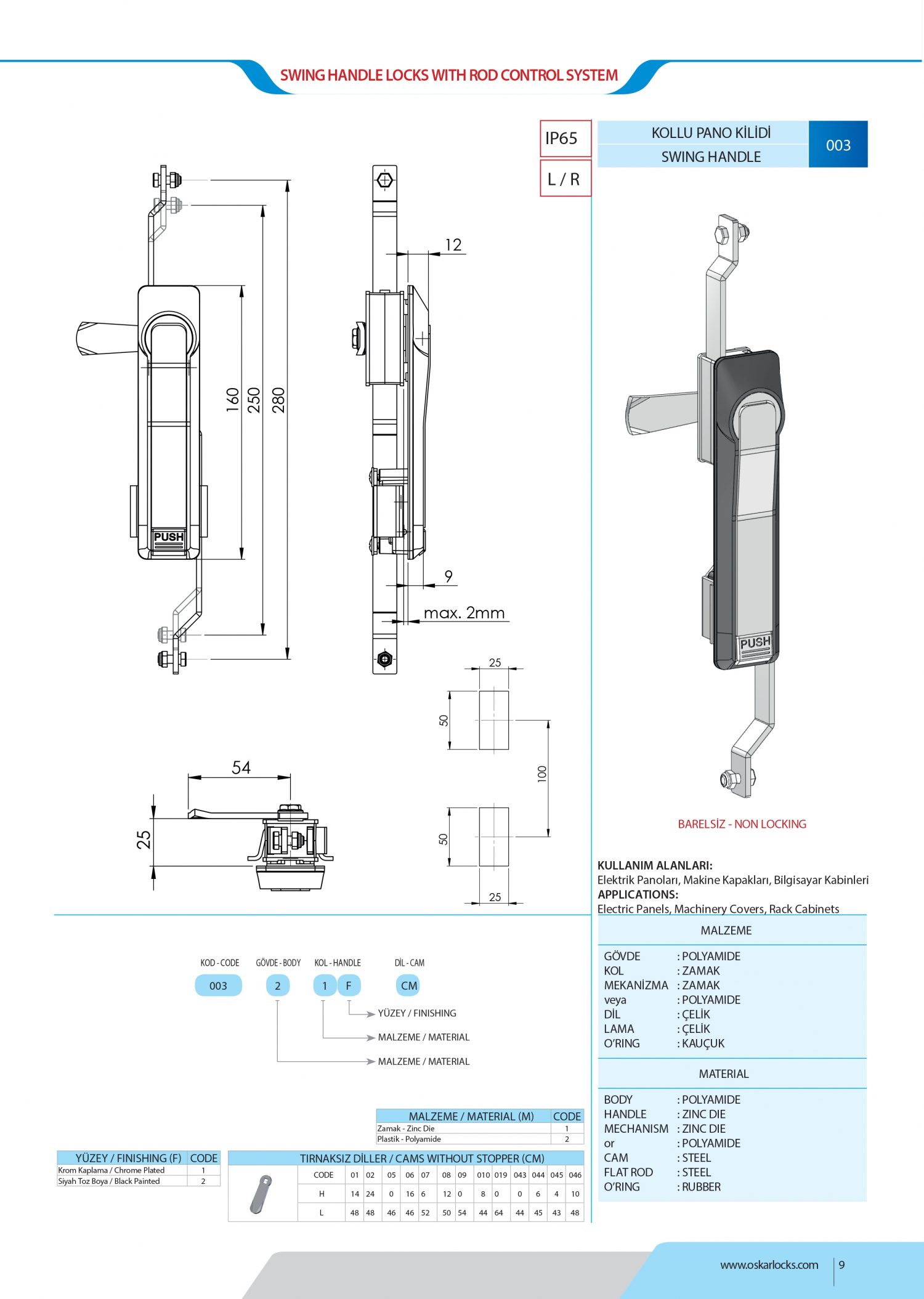 Područja upotrebe Električne ploče, ormarići, strojevi za vrata TIJELO POLIAMID DRŠKA POLIAMID CILINDAR POCINČANE MEHANIZAM CINK ILI POLIAMID LOKOT CINK