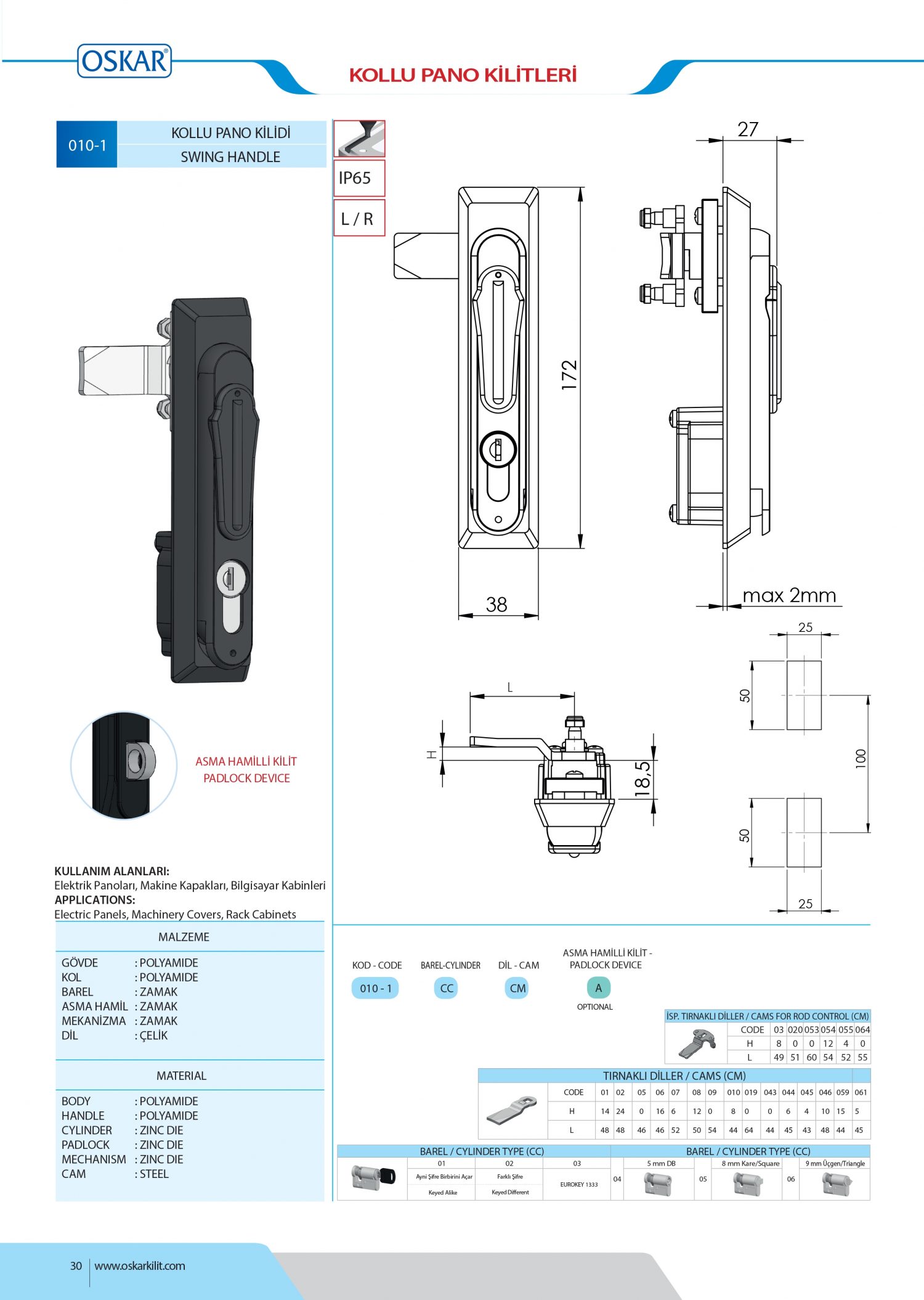 | Područja upotrebe | Električne ploče, Ormari za rack, Vrata, Strojevi |