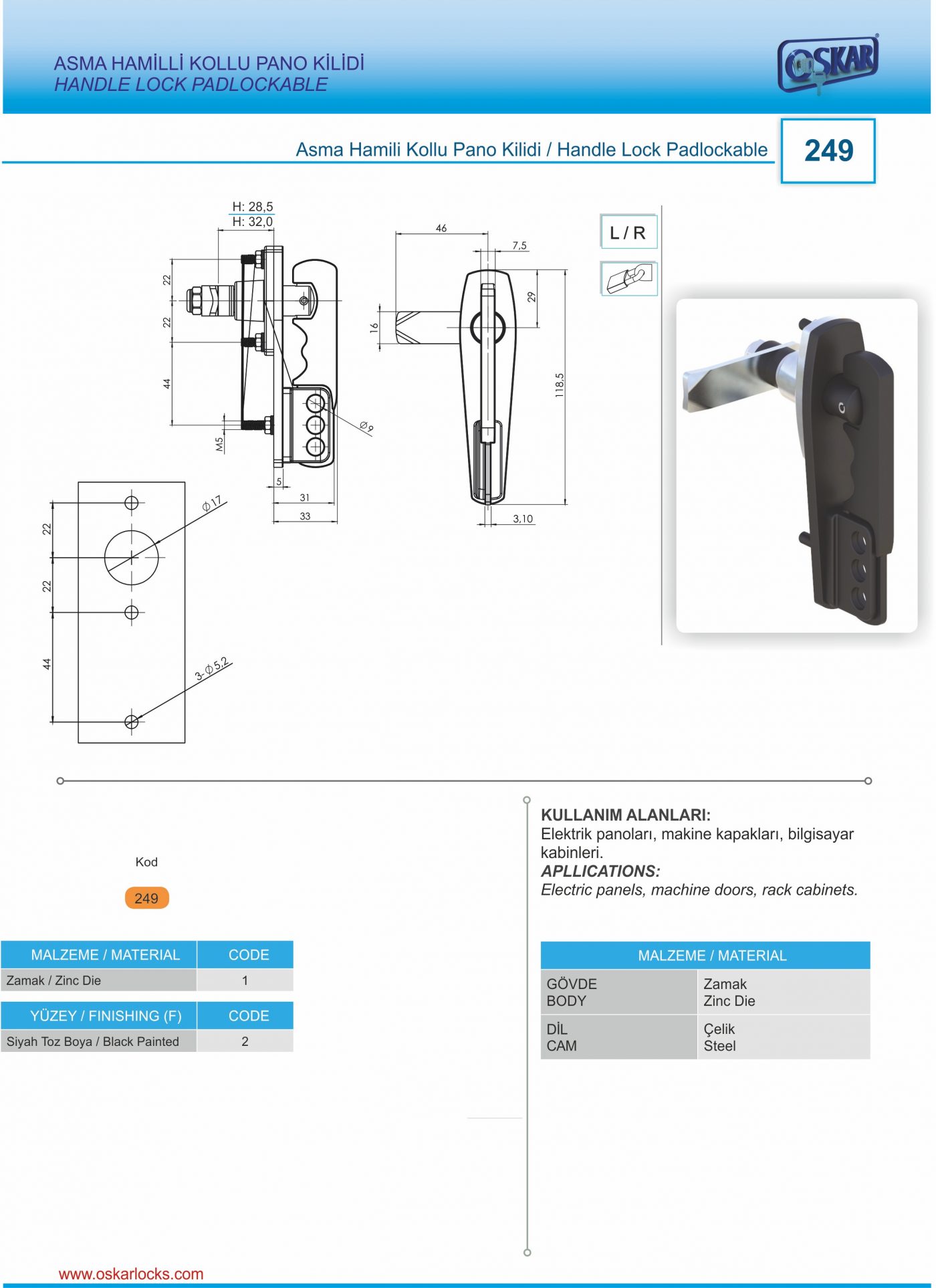 Dodatne informacije Područja upotrebe Električne ploče, električne ploče, ormarići, strojevi za vrata BODOVA POLIAMID DRŠKA POLIAMID CILINDAR POCINČANE MEHANIZAM CINK